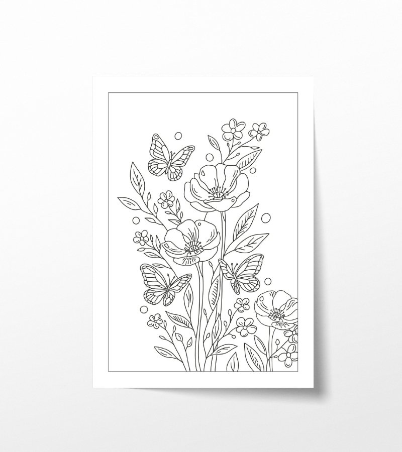 Ontsnap even aan de drukte en kom helemaal tot rust met deze bloemen- en vlinderkleurplaat, speciaal ontworpen voor cozy coloring. De sierlijke bloemen, speelse vlinders en zachte compositie nodigen uit tot ontspanning, creativiteit en mindful kleuren.